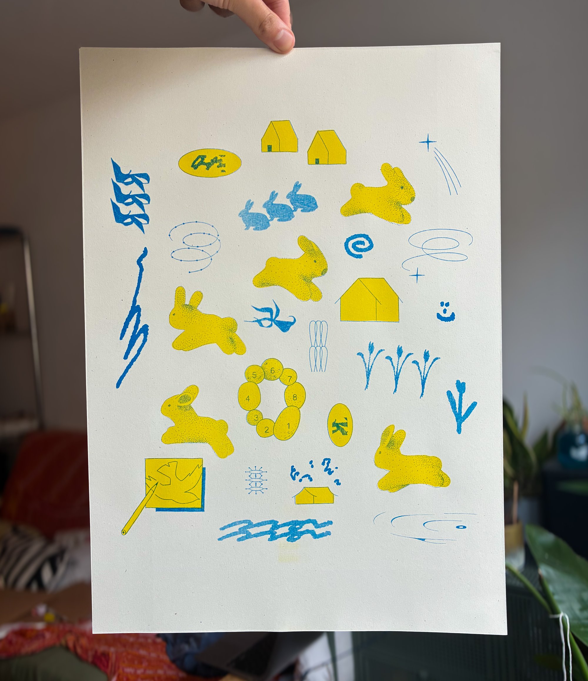 a3 risograph print made with out of the blue print in Edinburgh.